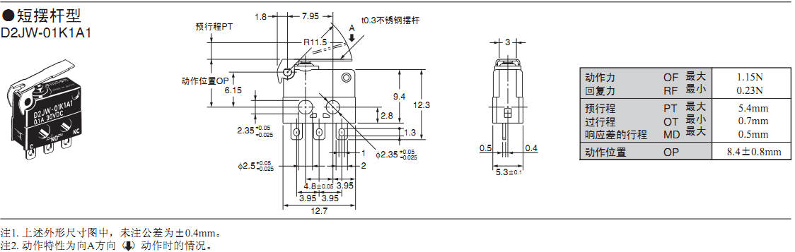 歐姆龍微動(dòng)開關(guān),D2JW-01K1A1,歐姆龍微動(dòng)開關(guān)D2JW