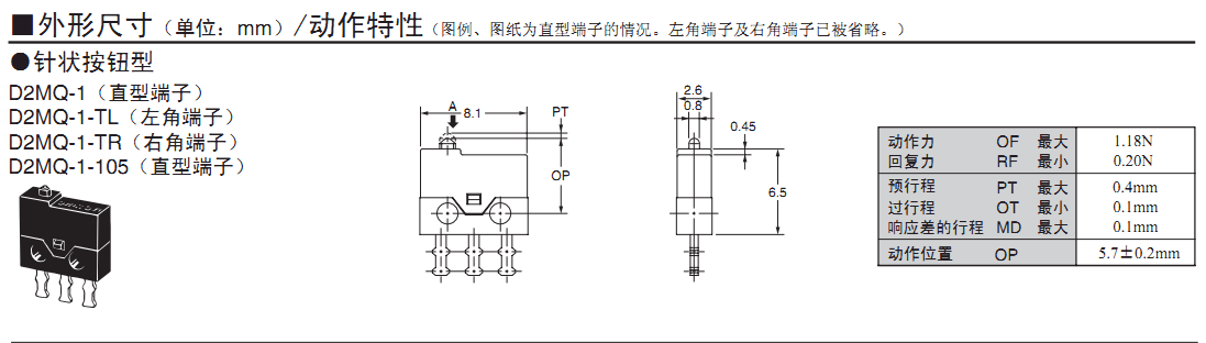 歐姆龍微動(dòng)開關(guān),D2MQ-1,歐姆龍微動(dòng)開關(guān)D2MQ