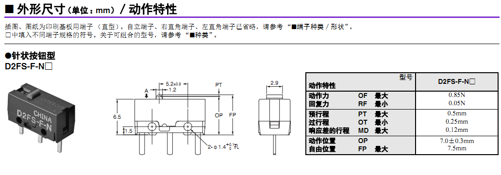 歐姆龍微動開關, D2FS-F-N,歐姆龍微動開關D2FS