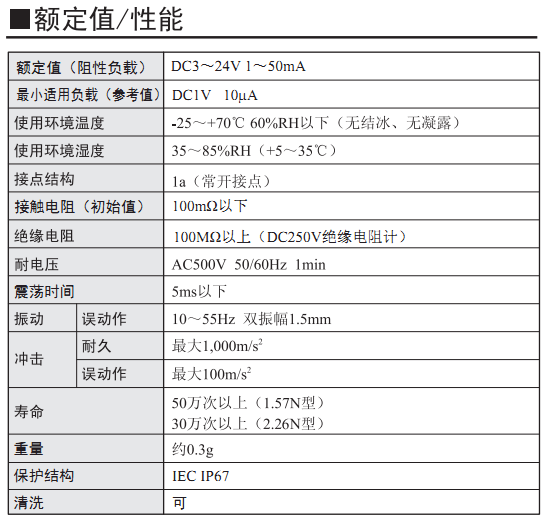 相當于密封構造IP67(IEC-60529)即使在塵埃較多或有水的地方也能確保高接觸可靠性?!俗硬砍?。
