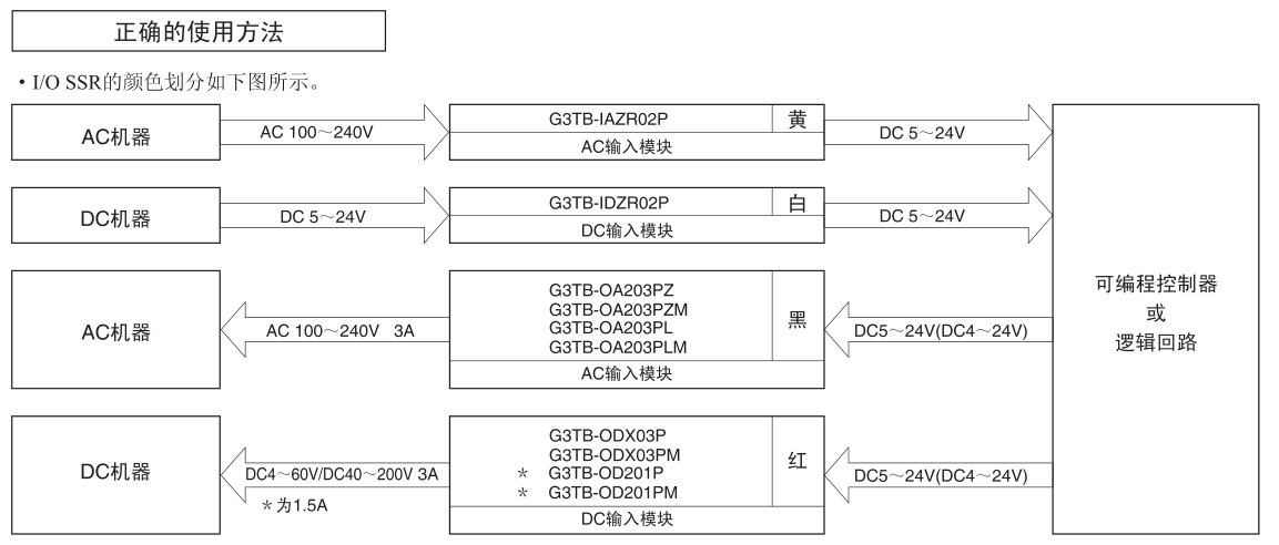 ? 具有輸入模塊(AC、DC)、輸出模塊(AC、DC) 產(chǎn)品系列,各模塊用顏色區(qū)分