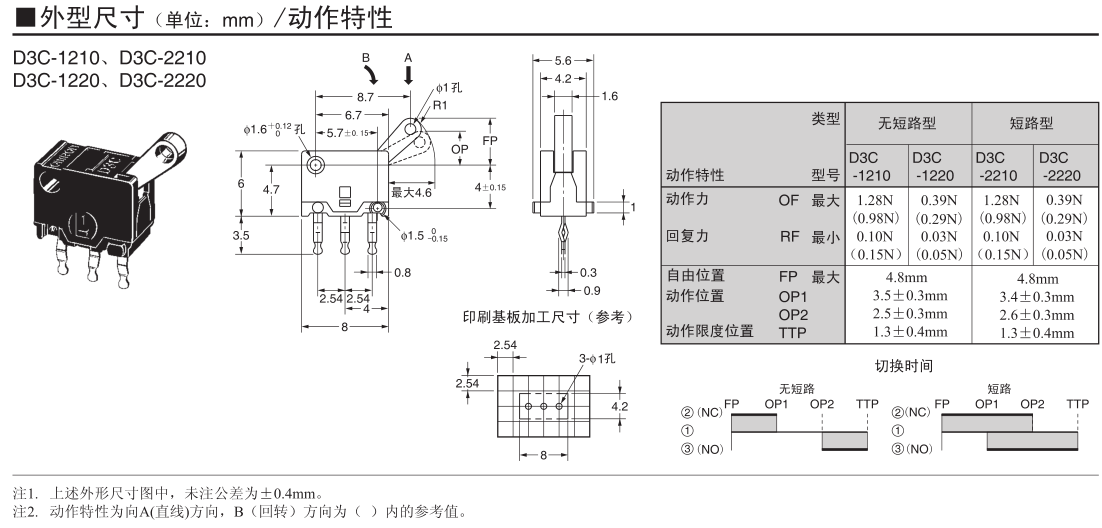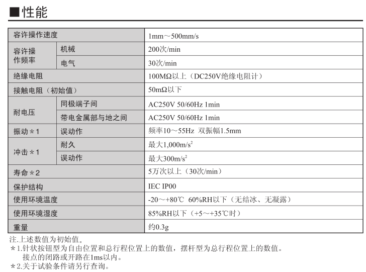 歐姆龍超小型,輕量,3mm的長行程。