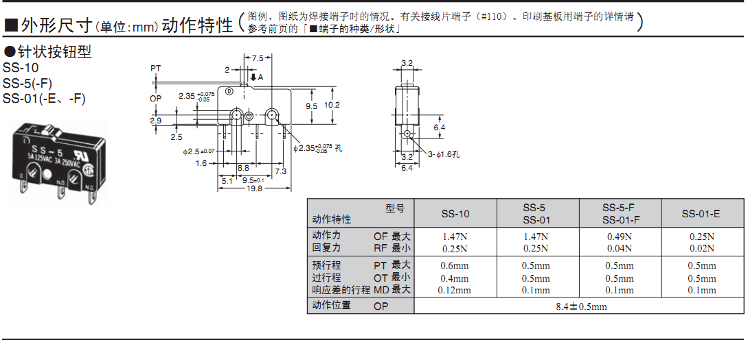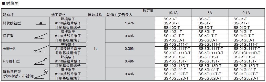 備有0.1A~10.1A型的各個品種,產(chǎn)品規(guī)格齊全,是歐姆龍暢銷的微動開關(guān)。