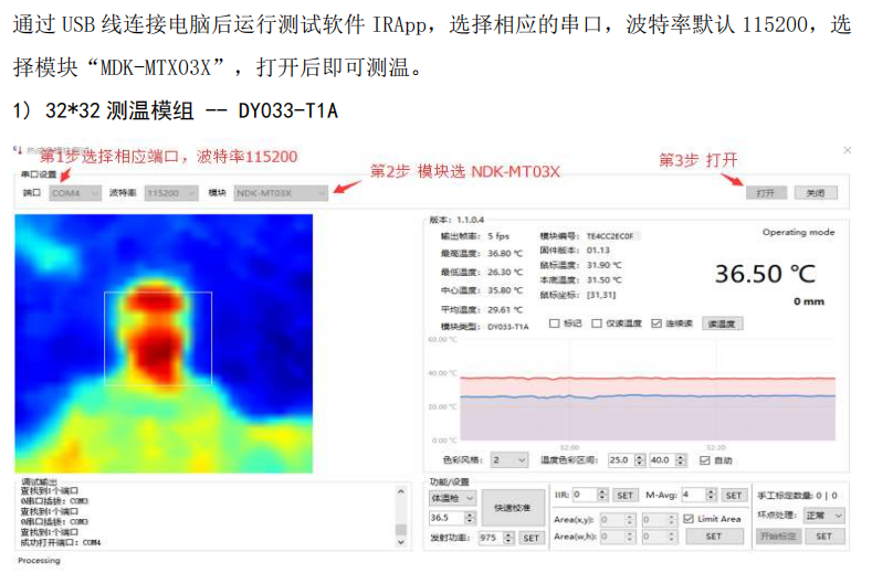 等,通過算法可實(shí)現(xiàn)測(cè)溫精度±0.2℃,具備數(shù)據(jù)實(shí)時(shí)輸出顯示,可通過USB接口