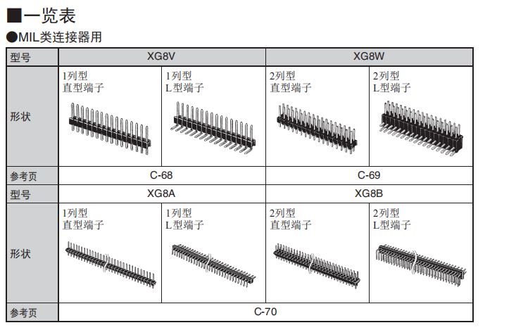 2列型L型端子插頭采用區(qū)間型基板,提高了焊接效率,再使用簡(jiǎn)易的鎖定擺桿,就可方便鎖定(XG8V、XG8W直型除外)。